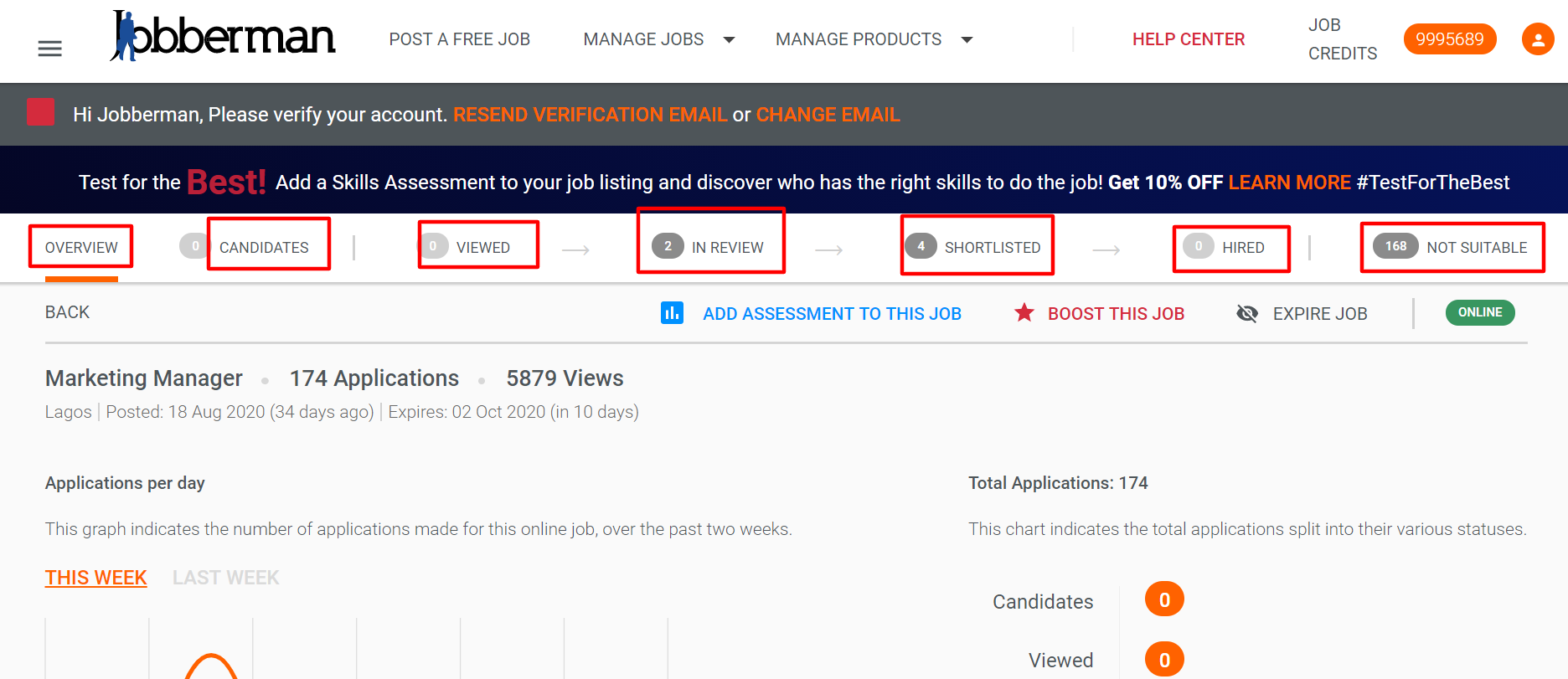 - While in the All Jobs page, click on the Job Title which you wish to start shortlisting, so that you can be redirected to the job details page to view the applications
